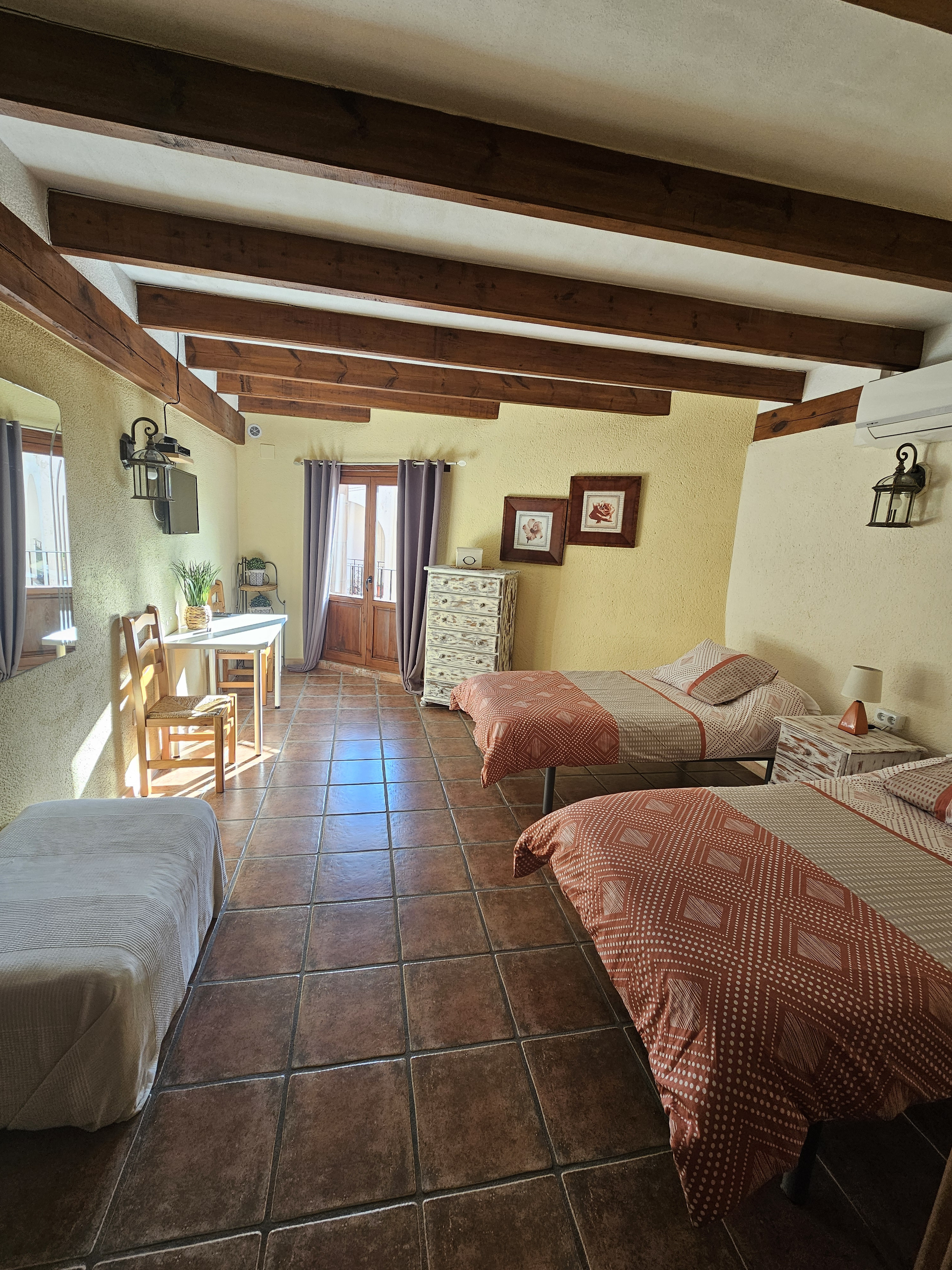 Welkom bij Kamer Julie, een ruime tweepersoonskamer in onze prachtige Spaanse villa. Deze kamer is ideaal voor stellen of individuele reizigers en biedt twee comfortabele eenpersoonsbedden. De badkamer is voorzien van een inloopdouche, wastafel en wc, zodat u kunt genieten van alle gemakken tijdens uw verblijf.